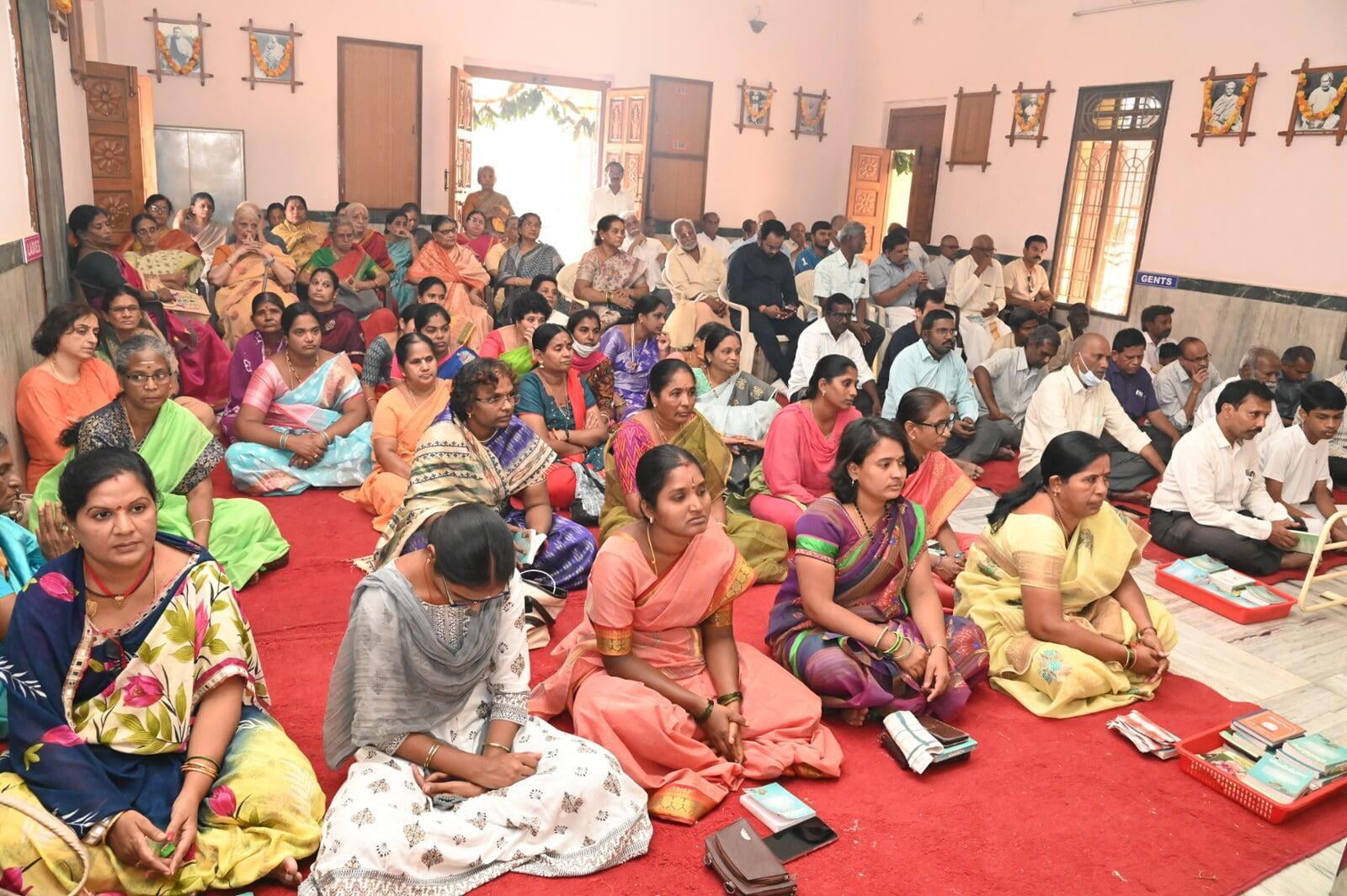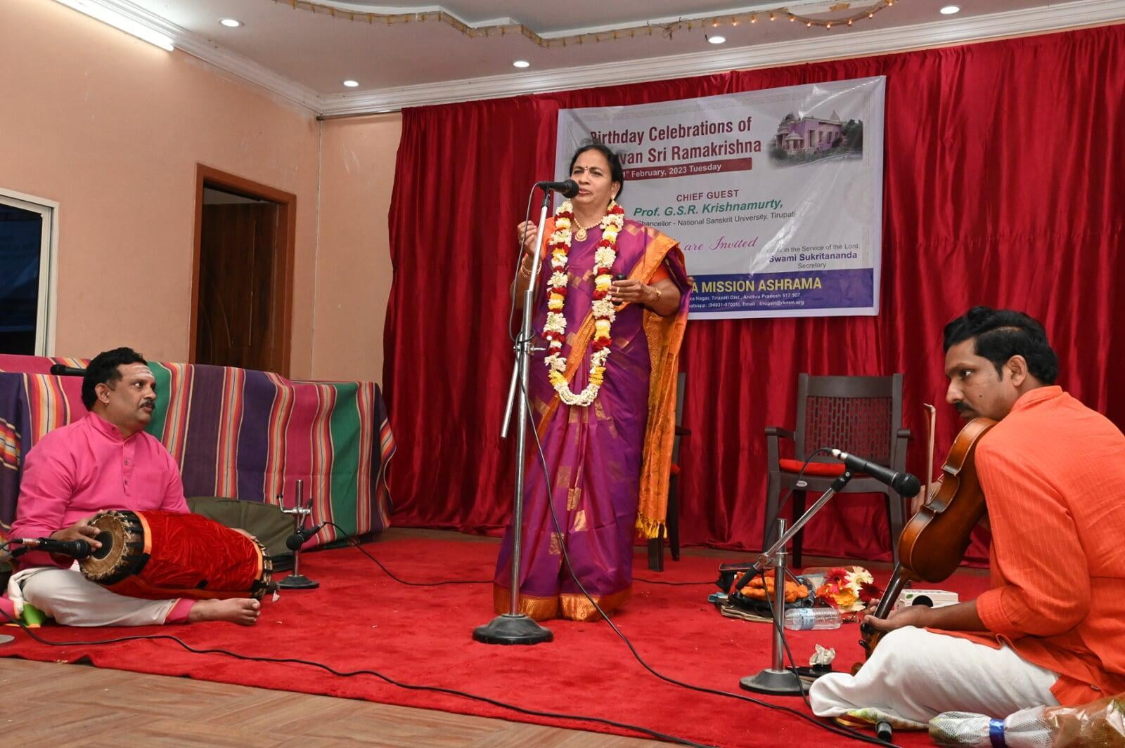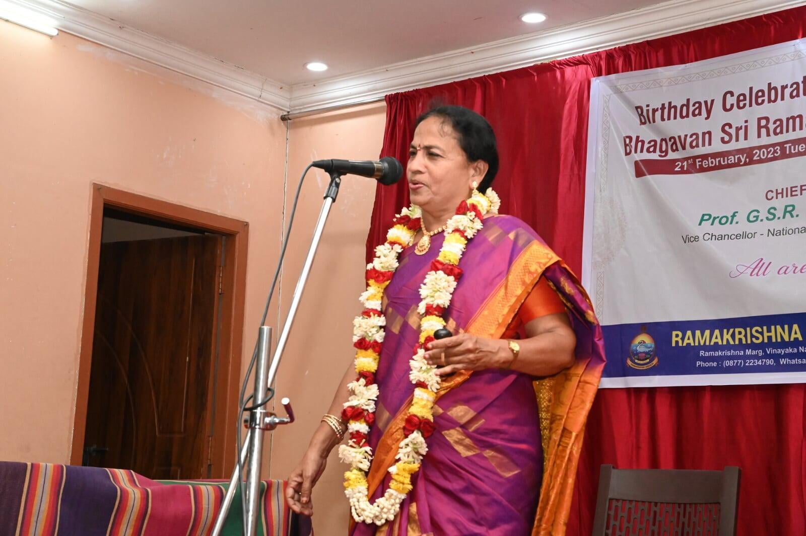 The meeting was presided by Swami Sukritanandaji, Ashrama Secretary in which Prof. GSR Krishnamurthy, Vice Chancellor of National Sanskrit University is the Chief Guest. Speaking on the occasion Krishnamoorthy told everybody should chant “Sthapakayacha Dharmasya” sloka and know the meaning of it. Everybody should know our Dharma as in Upanishads, Gnana, Daya, Dharma, Dhana should be followed by us. Inspired by Sri Ramakrishna Swami, Vivekananda addressed in Parliament of Religions held at Chicago and showed the entire world “What is our Dharma”. He said Sri Rama Krishna showed the way for the world, which should be followed by us. We should do service to the society.