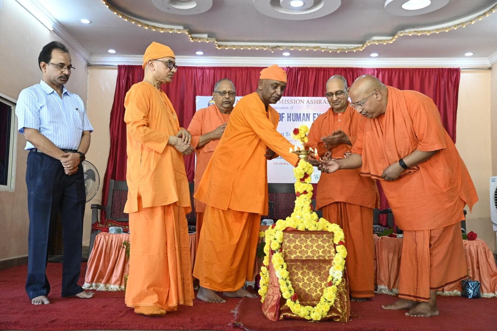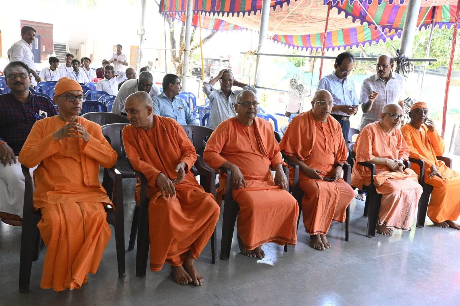 10-45 am Program started with public meeting the Asst. General Sec. & other Monks of Ramakrishna Order participated in lighting the Lamp on the stage as a mark of beginning & Swamijis did vedic chanting. In his Presidential address, Swami Sukritanandaji Maharaj, Secretary, Ramakrishna Mission Complimented the services rendered by Sadhus and devotees for the development of Ashrama.