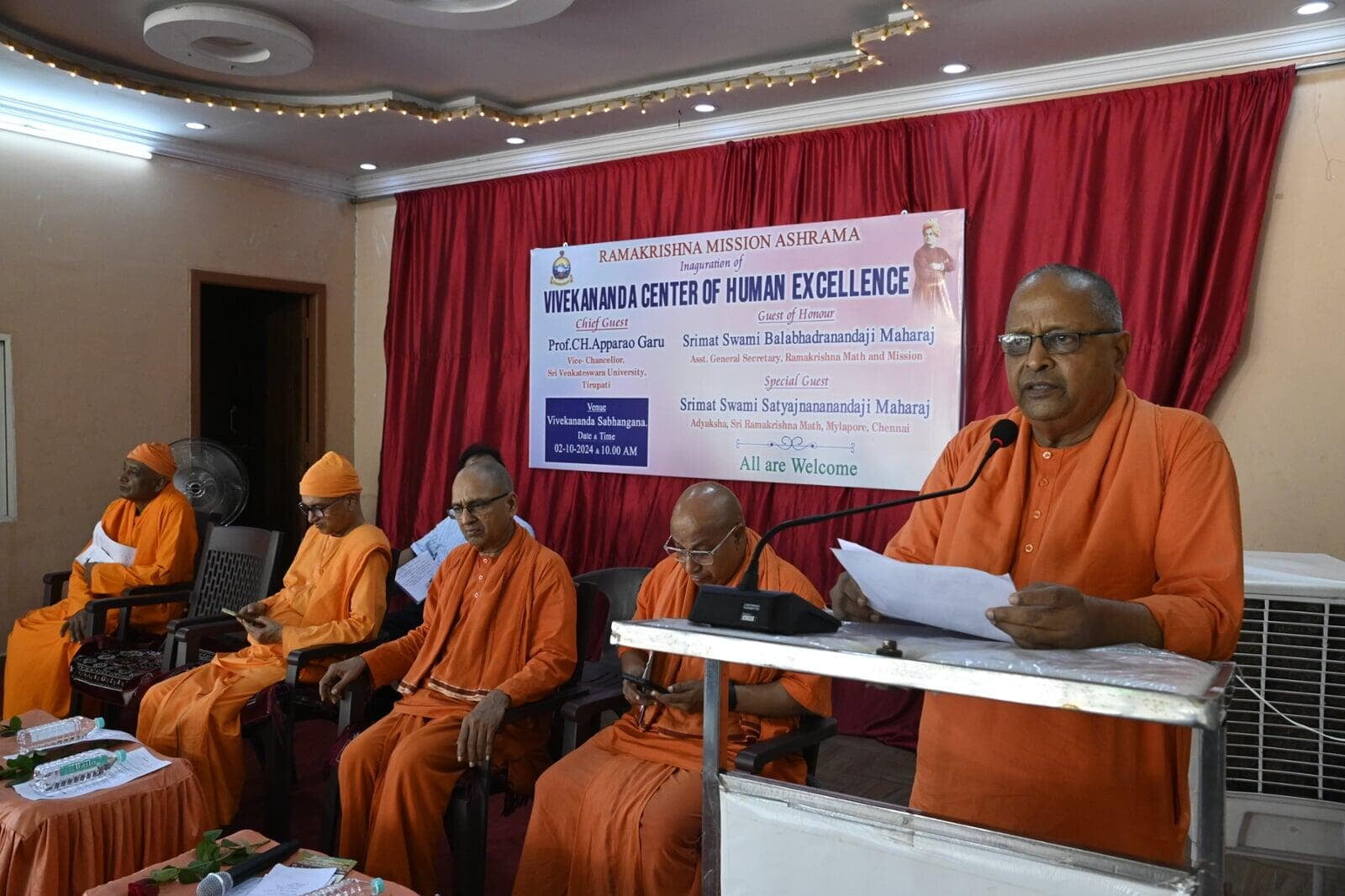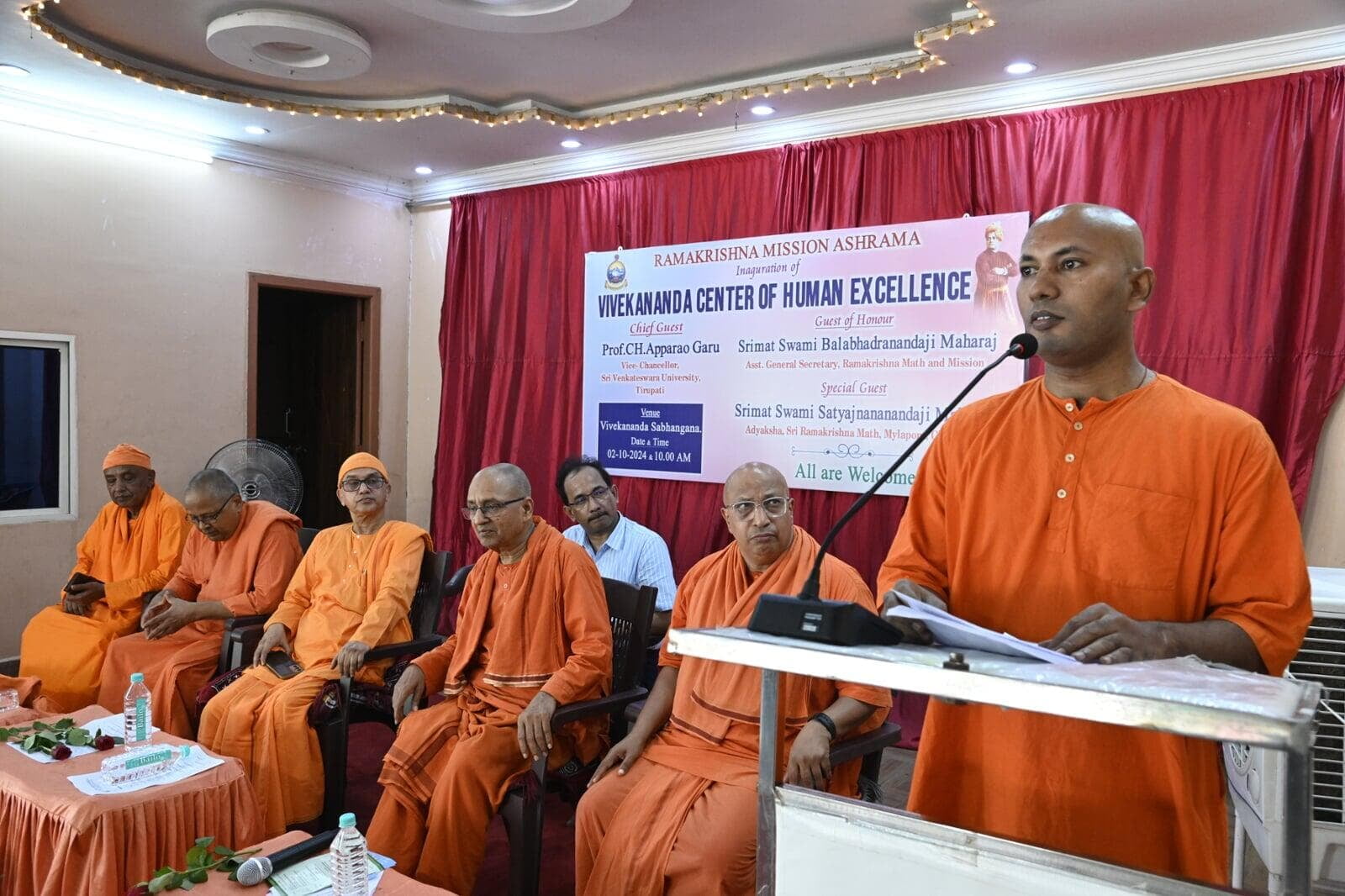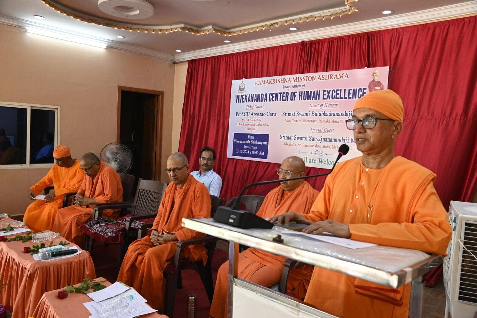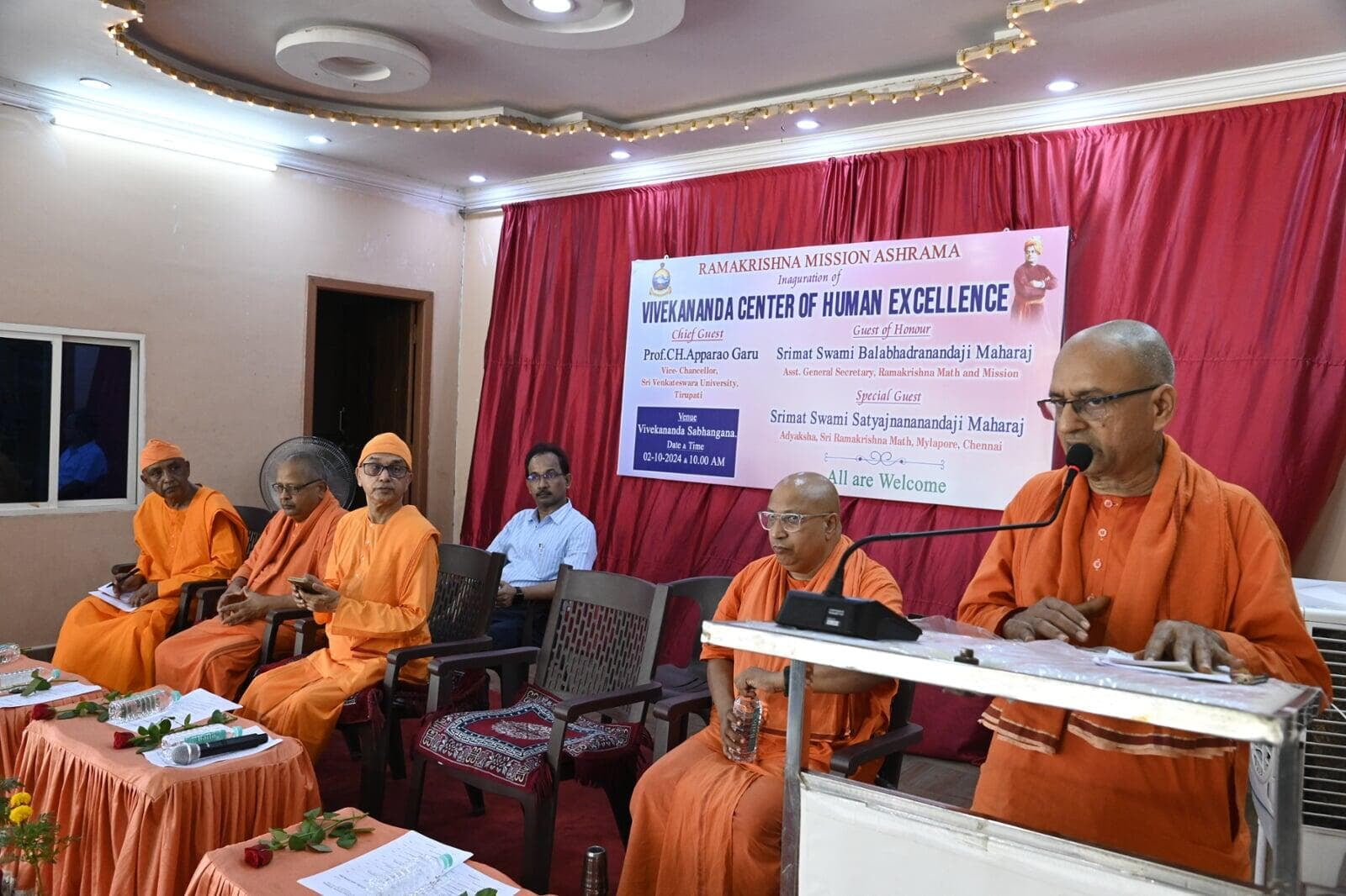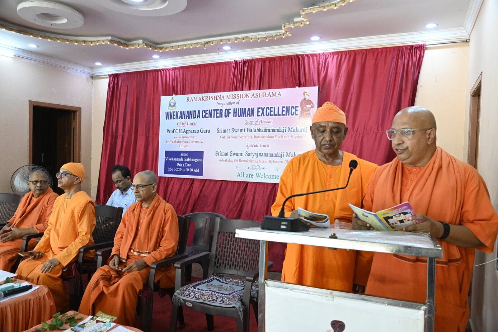 Swami Balabhadranandaji Maharaj, Asst. Secretary, Ramakrishna Mission, Belur Math inaugurated Vivekananda Centre of Human excellence at Ramakrishna Mission Ashrama, Tirupati. Today i. e. Wed 02 Oct. 2024 at 10.15 am Swami Satyajnananandaji; Adyaksha, Ramakrishna Math Chennai has started Ayurveda Clinic at the Ashrama.