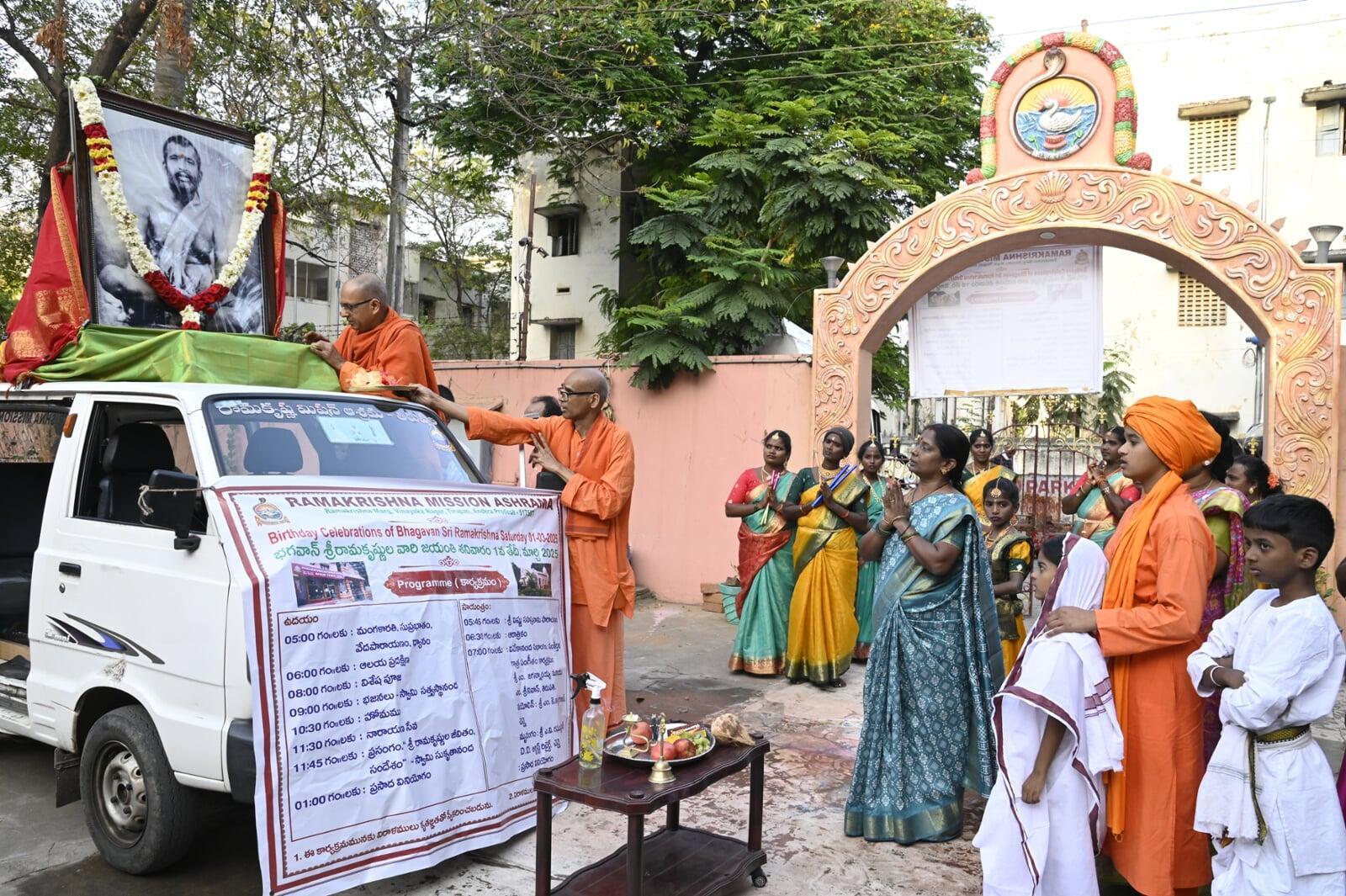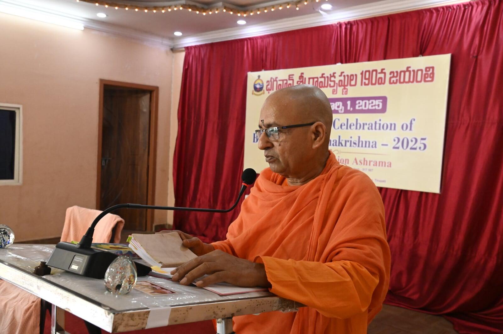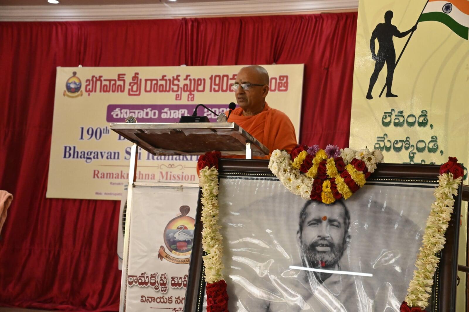 March 1: On Saturday, Bhagavan Sri Ramakrishna's 190th Jayanti celebrations were held at the Tirupati Ramakrishna Mission Ashram under the auspices of the local Ramakrishna Mission Secretary Swami Sukritananda on Saturday. The life message of Sri Ramakrishna, who was addressing Swami Sukritananda as part of the event, was impressed by all the devotees in the House. Speaking on the occasion, they said that the life of Ramakrishna was ideal for everyone, they were always visiting God, and that there was no zero or value next to one, and that it was not worth zero. After the message, all the devotees were given prasad. T -shirts were offered to 50 people as part of the Narayana service. A large number of volunteers, devotees and committee members participated in the event.