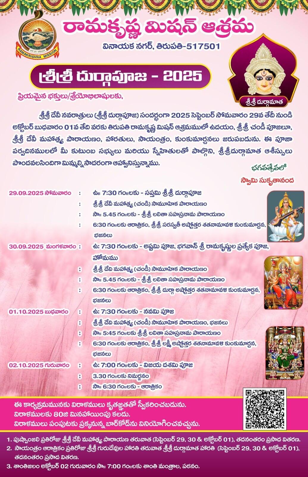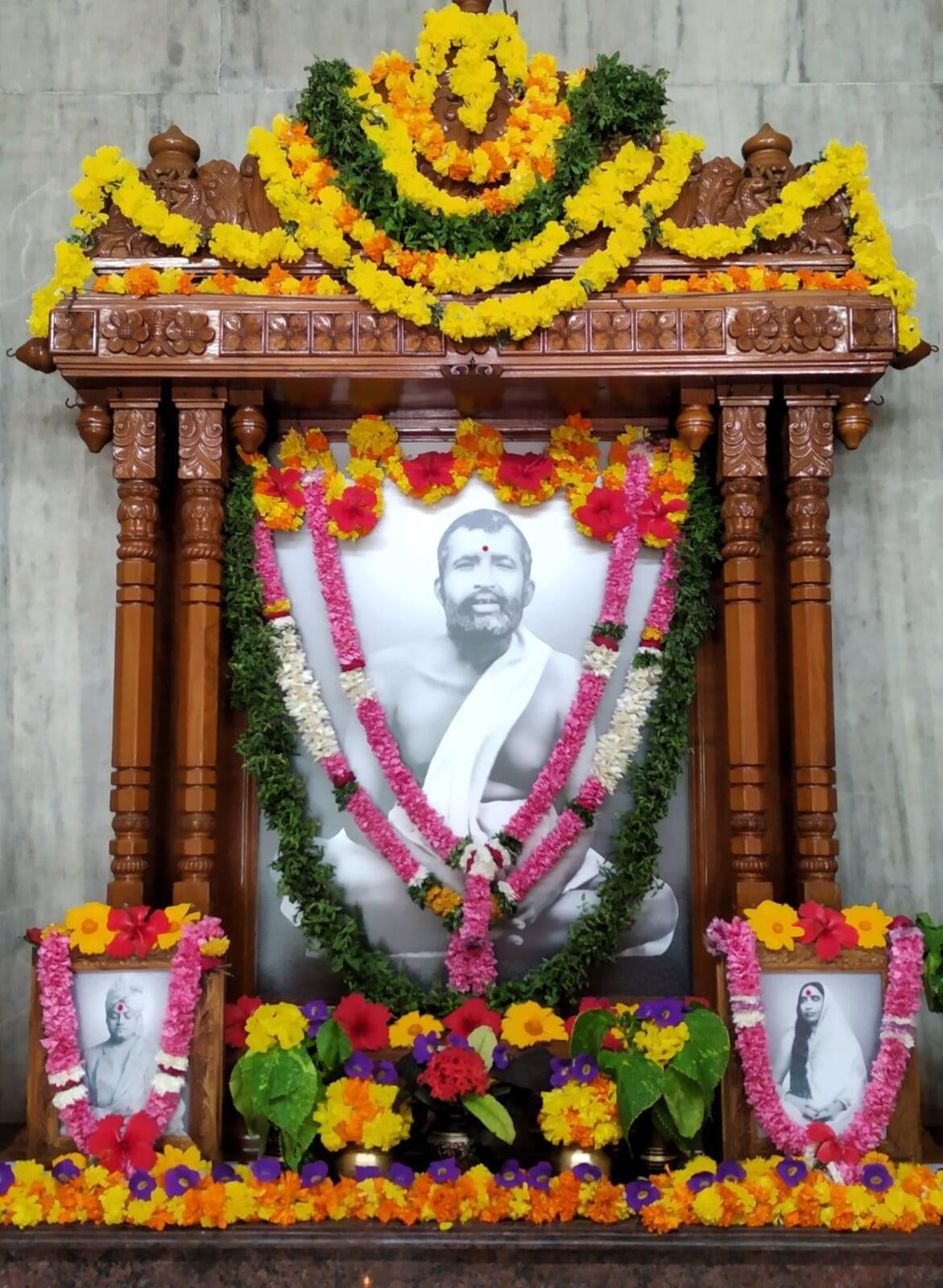 Sri Ramakrishna is worshipped in the temple following the mantras and procedures systematized by Swami Ramakrishnananda. Daily Puja of Sri Ramakrishna, Sri Sarada Devi and Swami Vivekananda is performed in the Universal Temple from 7.30 am to 9.00 am. The shrine is open from morning 5.00 am to 12.00 noon and evening 3.30 pm to 8.30 pm. Aratrikam or evening prayers will start at 6.45 pm. Immediately after Aratrikam there will be bhajans on all week days and special bhajans on Celebration days.